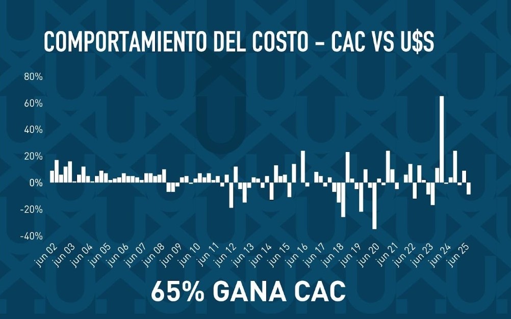 El valor de la construcción en la Ciudad de Buenos Aires experimenta un reordenamiento según un análisis privado. Esta situación rompe la lógica que definió los costos en los últimos meses. La suba del Índice de la Cámara Argentina de la Construcción (CAC) frente al dólar ya no replica el mismo movimiento según un trabajo de UNBOX Developers.