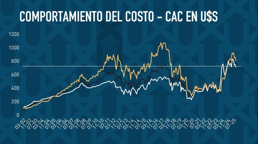 Este proceso responde a una mezcla de factores: la inflación internacional, cambios en la dinámica local de oferta, una mayor apertura comercial, el reacomodamiento del salario real y el ritmo de los proyectos en marcha. La referencia que hoy sostiene al sector es la obra gris. Su costo se aproxima de manera efectiva a los USD 1.000 por metro cuadrado, lejos de los USD 1.500 que se usaron como referencia durante gran parte del ciclo anterior.
