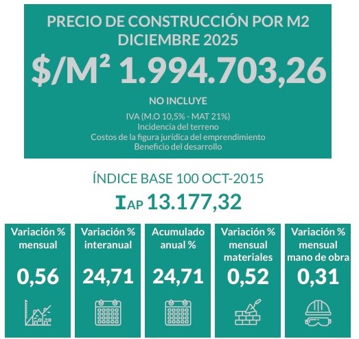 El detalle del índice de APYMECO refleja que en diciembre los materiales registraron una suba del 0,52%, mientras que la mano de obra avanzó apenas 0,31%, confirmando un cierre de año sin movimientos bruscos.
