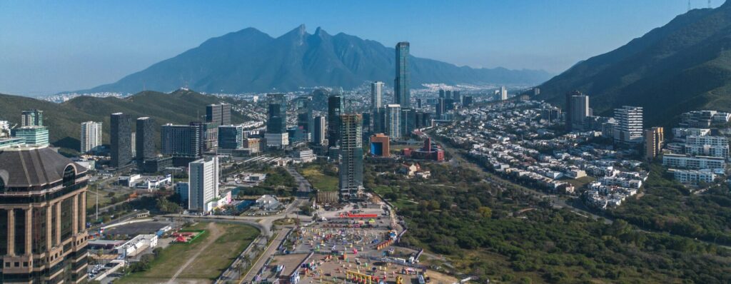 Vista amplia de Monterrey con los edificios que se imponen entre montañas y construcciones