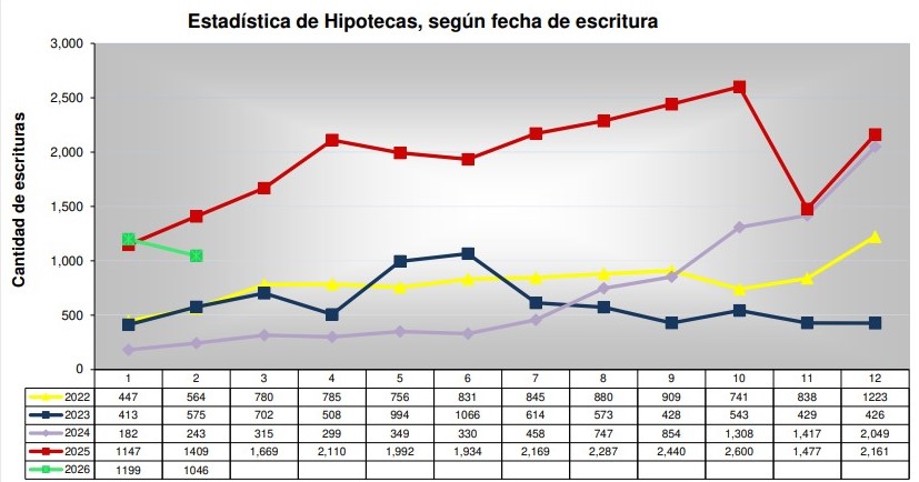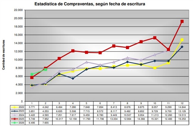 En contraste, la actividad mostró una mejora en la comparación mensual. Frente a enero, cuando se habían registrado 6.495 escrituras, el crecimiento alcanzó el 18%, en línea con la dinámica estacional del sector.