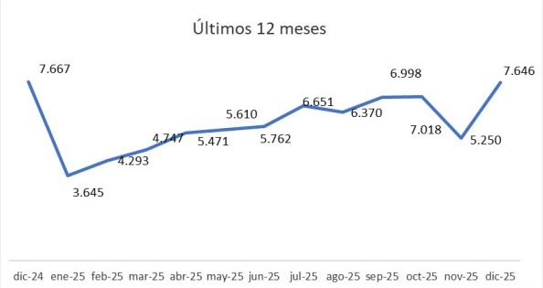 Hacia el cierre del calendario, la dinámica mostró matices. En diciembre se relevaron 7.646 escrituras, una cifra elevada en términos históricos, aunque el crédito hipotecario comenzó a mostrar signos de desaceleración. La suba de tasas y el endurecimiento de las condiciones de acceso por parte de los bancos limitaron el financiamiento en el último mes del año, sin alterar el balance positivo del acumulado anual.