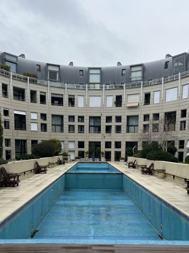 Desde 1994, la estructura interior incorporó viviendas y oficinas, mientras que el antiguo circuito automotriz dio lugar a un jardín interno con pileta climatizada. Ese espacio, hoy corazón del conjunto, reemplaza la pista elevada que alguna vez convirtió al edificio en una rareza global.