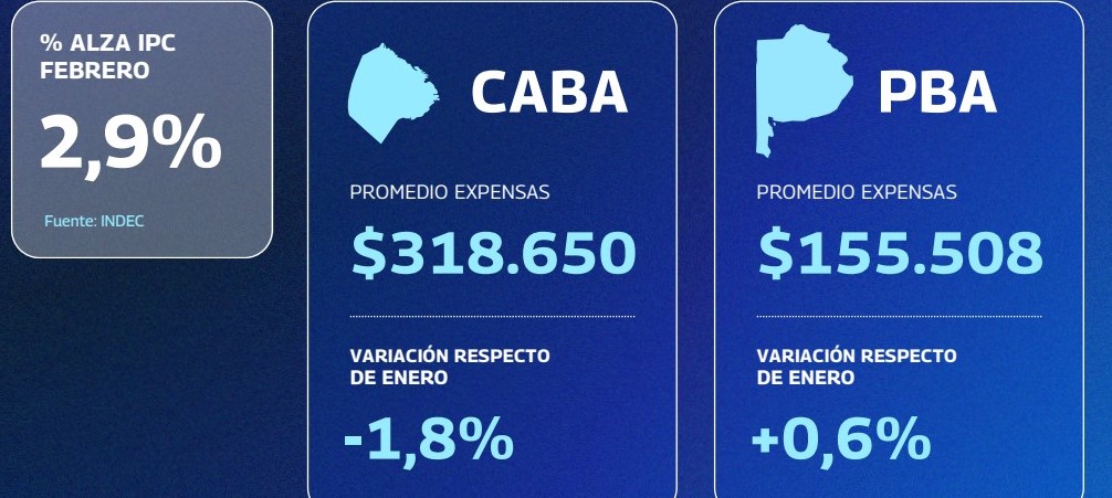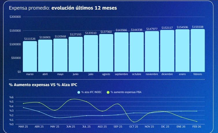 De acuerdo con datos de ConsorcioAbierto, la expensa promedio en la Ciudad de Buenos Aires se ubicó en $318.650 en febrero, con una baja del 1,8% respecto a enero. Sin embargo, el incremento interanual alcanza el 38,4%.