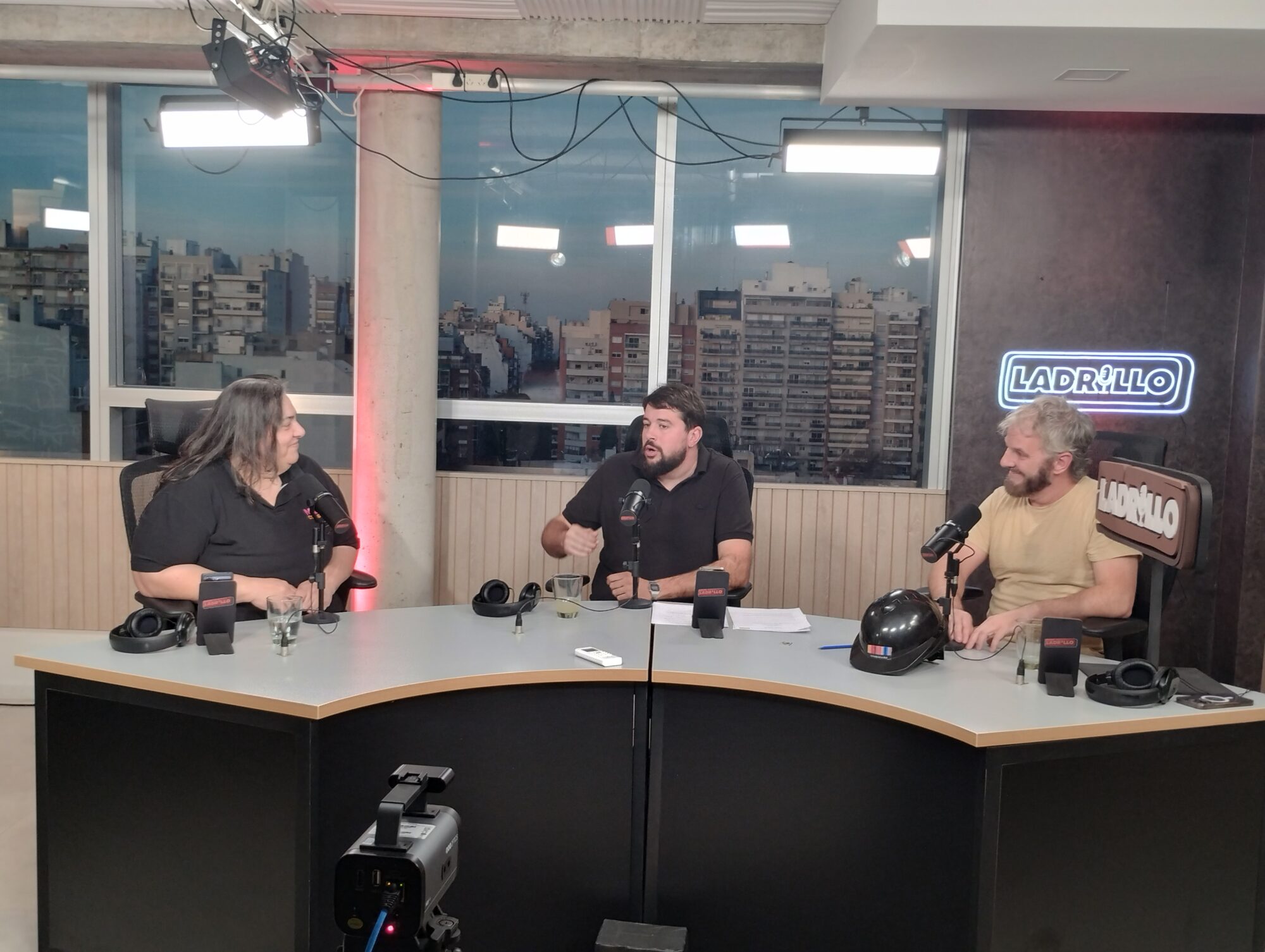 De izquierda a derecha, Tomassoni, Miqueo y Revelli, en un nuevo episodio de Ladrillo.Info, el streaming que es suceso en el mundo inmobiliario