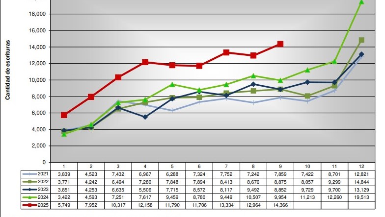 El Colegio de Escribanos porteño destacó que se trató del tercer mejor septiembre de toda la serie histórica, de casi tres décadas, y el mejor desde 2005, en plena expansión del boom sojero. Además, se alcanzaron 44 meses consecutivos de suba interanual, consolidando la recuperación del mercado.
