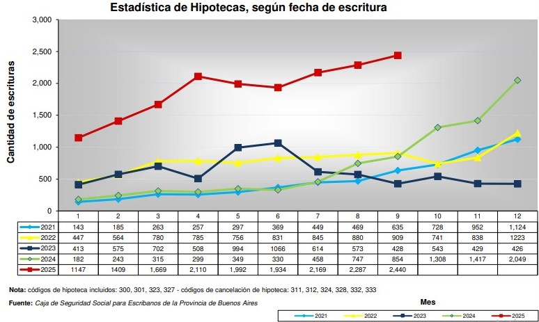 El número de escrituras con hipoteca fue de 1.486, lo que implicó una suba del 110,8% frente a septiembre del año pasado. En los primeros nueve meses del año se acumularon casi 50.000 operaciones, de las cuales más de 10.000 se concretaron mediante crédito hipotecario, lo que representa poco más del 20% del total de compraventas.