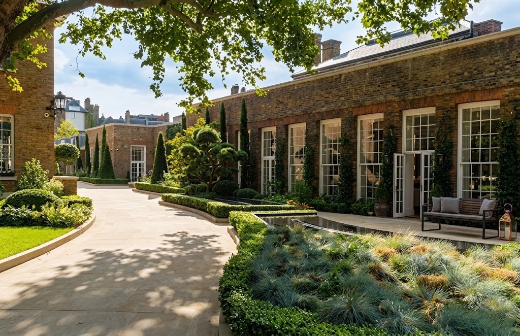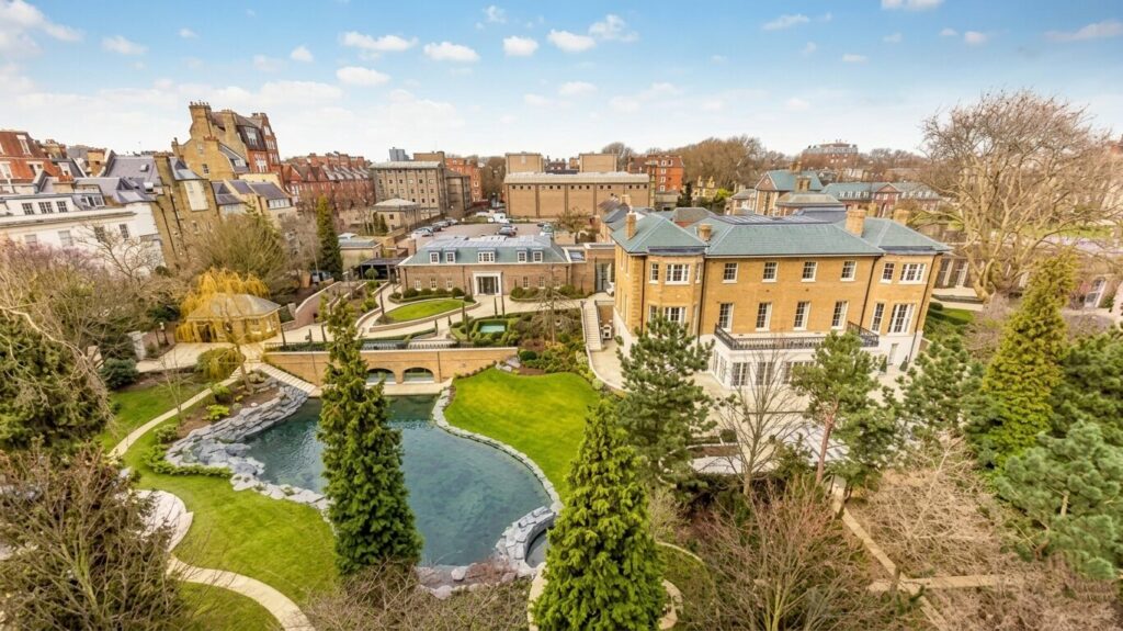 La mansión ocupa cerca de 8.000 m2 y responde a un concepto poco habitual incluso en el segmento premium: recrear una finca privada dentro de una de las ciudades más densas del mundo. El diseño combina arquitectura de estilo georgiano con intervenciones contemporáneas y tecnología de última generación.