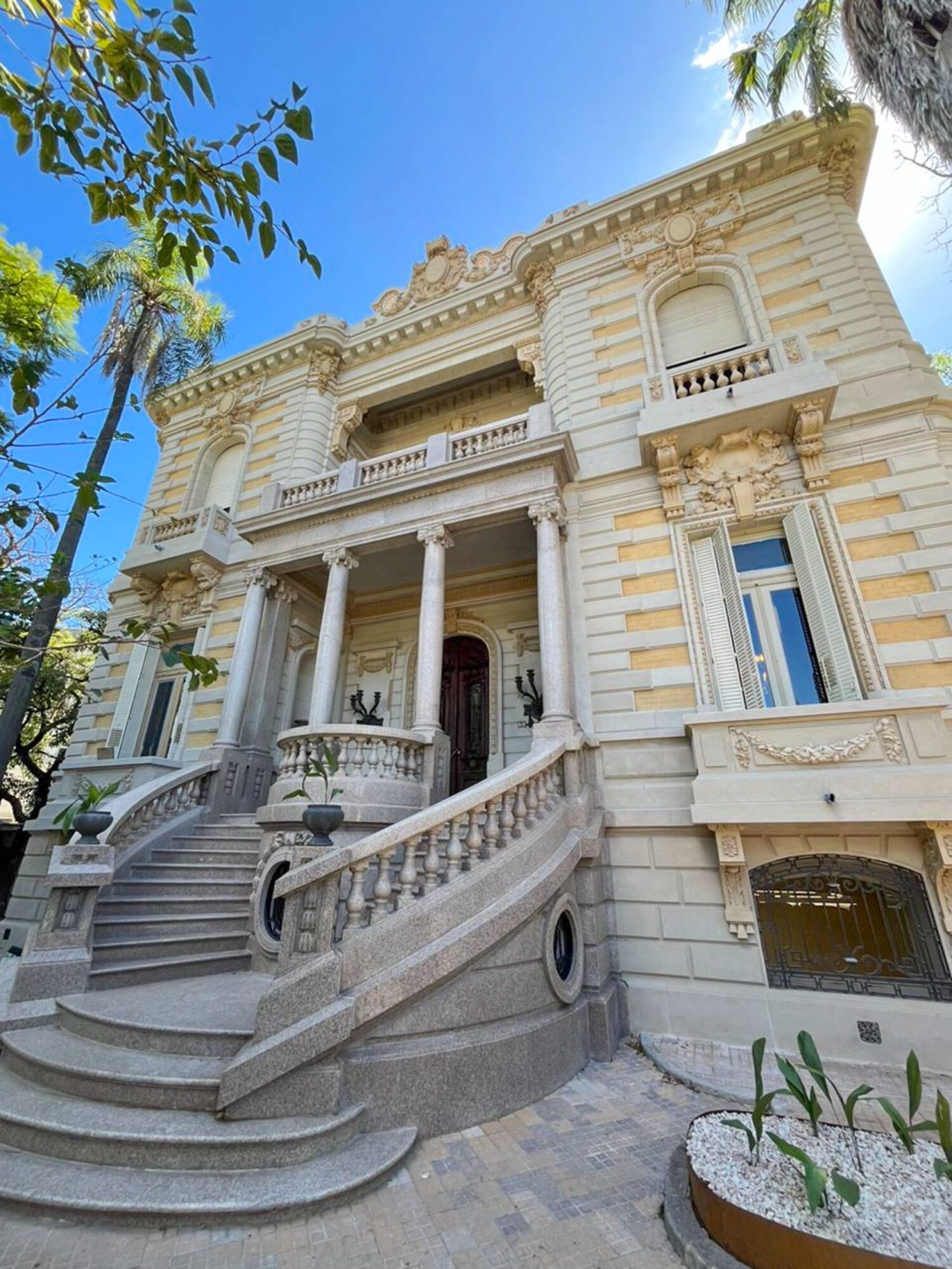 Fachada del Palacio Ceci tras la puesta en valor: se destacan molduras ornamentales, balaustradas y la incorporación de un ascensor vidriado que mejora la accesibilidad sin alterar la estructura original